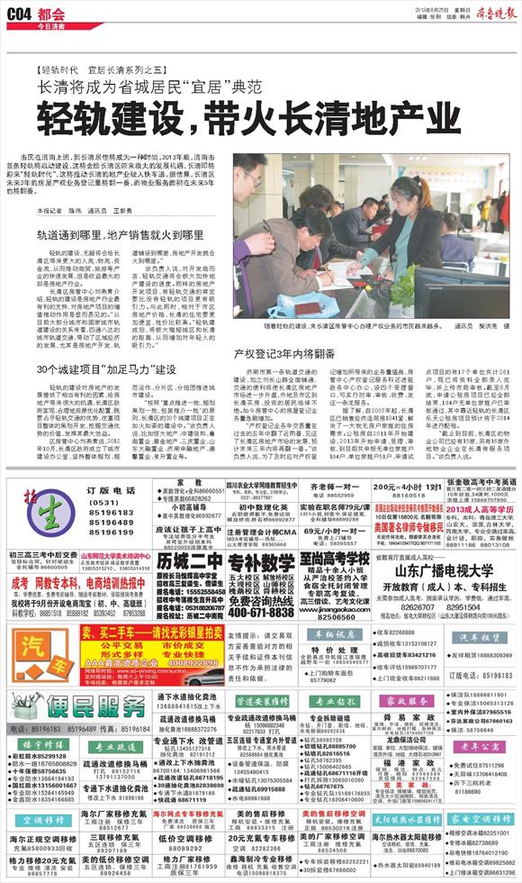 轻轨建设,带火长清地产业