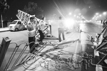 | 25日晚,德州市区一罐车撞倒限高杆,所幸无人员伤亡。本报记者 马志勇 摄 |