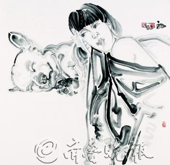 赵初凡的《尚宠》系列是一个颇有意味的命题。物质生活的提高带来了宠物热,这一普遍现象的背后,是物质前行所造成的精神上的相对失落。心灵被物化了的世界冷遇,人需要一个倾诉内心的聆听者,和一个释放抑郁的对象。而宠物便是无言倾听者,它担当起了承载人类抑郁的心理医生。在宠物面前,人把伪装卸掉,可以放纵,可以撒娇,可以狂妄,可以卑下,把本质的内在释放,不存在失态。他通过描绘人与宠物的各种情态,从人性的角度触探了人的心灵家园。