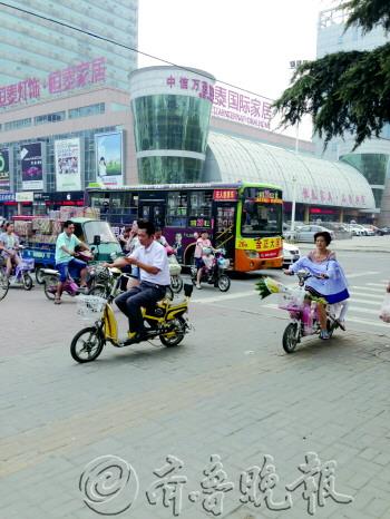 | 24日下午,在中华路与和平路交汇处,一名市民边骑车边查看手机。 |