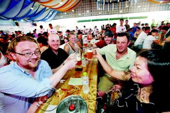 | 啤酒节期间,啤酒城内人头攒动。 (资料片) 本报记者 张晓鹏 摄 |  | 游客在啤酒城举杯畅饮美酒。 (资料片) 本报见习记者 杨广帅 摄 |