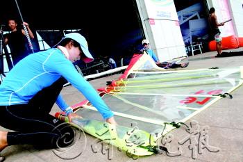| 最后一天的比赛结束,队员们整理帆船。 本报记者 刘涛 摄 |