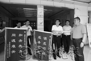本报8月25日讯(记者 张峰 见习记者 王文彬 通讯员 程兵) 近日,龙马重工科技有限公司及惠民惠宇精密机械有限公司给惠民供电公司送来“调度巧妙 服务优良”、“和舟同济 共度难关”的锦旗,感谢惠民供电公司在此次抗击飑线风战役中为保惠民人民安全生产生活用电所付出的艰辛努力。 8月7日,惠民遭受飑线风袭击,瞬时风力达到15级,惠民电网受损严重,其中1座110KV变电站,9座35KV变电站失电,110KV线路掉闸1条次,35KV线路掉闸9条次,10KV线路掉闸44条次,造成67207户居民停电。在电力抢修恢复供电工作中,供电系统全体参战人员不惧艰辛,连续作战,克服了气候恶劣、道路不畅等困难,用最短的时间全面恢复了全县因灾损毁的电力设施,确保了群众的生活、生产用电。
