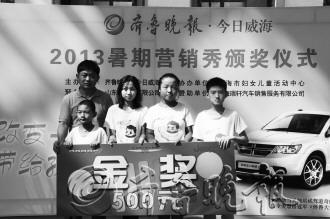 本报8月25日讯(记者 王天宇) 在众多小报童的期盼下,24日上午9时,本报第四届暑期营销秀活动颁奖仪式在市妇女儿童活动中心盛大启动。当天,有多达46人次小报童领取了金银铜奖的奖金、奖品及获奖证书,有多达58人领取了全勤奖的奖金、奖品。此外,当天还发放了模范家长奖、西霞口一日游、大连豪华两日游和优秀作文奖等奖励。 自2010年起,本报今日威海推出了暑期系列公益活动——暑期营销秀。活动开展四年来,得到了广大小报童及家长的热烈欢迎,赢得了广泛社会赞誉。今年的30天营销秀活动,小报童们始终保持着高昂地参与热情,克服了高温、阴雨等恶劣天气的影响,不怕苦、不怕累、坚持不懈,广大小报童家长积极协助配合,不仅较好地完成了营销售报任务,而且切切实实锻炼了小报童的营销技能和吃苦耐劳的品质。 30天活动时间参加的小报童达到300余名,累计售报数量超过24万份,平均单日售报量超过8000份。 为了鼓励小报童积极锻炼自己,磨练吃苦耐劳的品质,今年营销秀活动设置了多项奖励。其中,根据每期售报总量评选金银铜奖,两期活动金奖共计6名、银奖10名、铜奖30名,除分别获得500元、300元和200元的现金奖励外,还可免费获赠2014年齐鲁晚报一份,并自动成为本报2014年小记者。 同时,今年五个活动站点共计有58名小报童获得了全勤奖,每名小报童除了有200元现金奖励外,也分别获赠了2014年齐鲁晚报一份,自动成为本报2014年小记者。活动现场,11名小报童的家长被评为本届营销秀活动的模范家长,他们除了获赠新大东精美纪念品外,每位获奖家长还赢得了荣誉证书。此外,当天还发放了西霞口一日游、大连豪华两日游和优秀作文奖等奖励。 同时荣获铜奖和全勤奖的小报童冯如曦高兴地说:“这个暑假参加营销秀活动,不仅拿到了奖金、奖品,懂得了营销的技巧,而且真正体会到了挣钱的辛苦,非常有意义。”