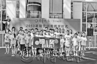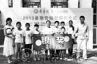 记者 王震 摄 |  | ▲暑期营销秀颁奖现场,获得铜奖小报童合影留念。