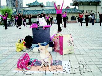 时间:2013年8月20日 自述:清晨的广场上,小狗像个忠诚的“卫士”,瞪大眼睛在为主人看护着物品。 点评:让主人锻炼没有后顾之忧。