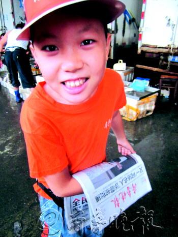 本报8月26日讯(记者 曲彦霖) 25日早上6点半,牟平北翠市场内已经很热闹了,跻身其中,着一身橙色小报童服装的杨青谚正在跟等待着开张的小店老板们推销报纸。 这个假期对杨青谚来说是忙碌的。从8月10日开始连着学了近半个月的游泳,一直到8月23日才结束,每天上午从9点50学到中午11点半;每天下午2点到5点,他还要参加另一个辅导班。而之前已经报名参加的小报童营销秀第三期上街售报时间为8月14日至8月28日,这样一来,杨青谚每天只能在早上9点50上辅导班前卖完报纸,时间特别紧张。 “当初我在报纸上看到了这个活动,但是是他自己要参加的。”在一旁陪杨青谚卖报的爷爷说,虽然时间紧,但孩子没有放弃,可时间太短了,孩子每天卖出的报纸并不多。 “我早上卖到过30份。”虽然杨青谚也羡慕排行榜上的小报童,但他是个知足的孩子。 卖起报来,杨青谚格外活泼,他说卖报让他结识了很多朋友。初见小报童魏雨潼时,杨青谚便唤人家“老魏”,俩人一起卖报时,他便会留下一句,“买他的吧,他还剩228份。”随后便闪到一边。“卖完,成功,收工,回家!”不到半个小时,10份报纸全部卖出。“要不你到我家玩玩?”他还不忘热情邀请魏雨潼。 “你们办这个活动挺好的。”看着孙子每天都坚持卖完报纸再上辅导班,爷爷非常欣慰,“这对孩子来说是个锻炼的机会,锻炼他的意志,让他广泛结识人群,明年我还会支持孩子卖报!” ◤每卖出一份报纸,杨青谚都很开心。 本报记者 曲彦霖 摄 第三期小报童来稿 卖报磨练了我的意志 于仕林 牟平区第二实验小学