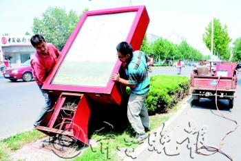 本报8月26日讯(记者 王金强) 8月2日,本报《铁路退城,焦急的夙愿》报道了铁路穿城而过导致市民出行不顺的问题。26日,记者了解到,湖滨南大道上的三条穿城铁路完成退城,已经退役的铁路被平坦的沥青路掩盖,市民出行难终于得到缓解(见右图)。 “以前开车去南边,走湖滨大道都得绕道,不然会磕底盘。”出租车司机赵师傅说,湖滨大道有三条铁路穿过,尤其到振华玻璃厂那两条路,两条铁轨中间的沥青已经被轧花,道路中间坑洼不平,以前他总是绕道两侧的人行道,以防磕到车底盘。 这几天,他往嘉诚景园南边那几个小区送客人时,发现路变顺畅了,因为道路中央的铁轨里被铺上了沥青,道路变得平整了。 据新华街道办事处工作人员说,从德州市中心广场往南不到3公里的距离内,一共有三条铁路铁轨穿城而过,即老实华化工厂至木材公司一条铁路专线、振华玻璃厂两条铁路专线。 在万达广场入驻老实华化工厂地块后,老实华化工厂至木材公司一条铁路专线湖滨南大道那一段寿终正寝,目前已经铺上沥青。 24日晚,记者在现场看到,市政工人正在施工,对振华玻璃厂两条铁路专线进行了修补,并将两条铁轨中间的沥青轧平整。 德州市城管执法局市政管理处工作人员告诉记者,目前,湖滨南大道三条穿城而过铁路线道路修补已经完成。 除旧 26日,工作人员正在对湖滨大道绿化带中的铁制广告灯箱进行拆除,近期将进行统一更换。 本报记者 马志勇 摄