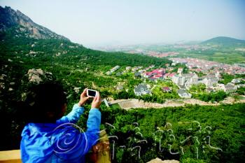 26日,游客在崂山仰口风景区拍摄美景。当天,岛城晴空万里,市区最高温33.7℃。气象部门预计,27日持续晴朗天气,28日开始天气转阴,有小到中雨,局部有短时较强降雨并伴有雷电,雷雨时阵风7级。 本报记者 张晓鹏 摄影报道