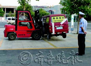 本报8月26日讯(记者 潘旭业) 长期将报废车停在商业街的公共停车位,到了晚上就变身小商店,兜售各种货物……26日,青岛开发区行政执法监察大队执法人员展开重点整治,将多辆长期占用公共停车位的“僵尸车”暂扣。 26日清晨5时,记者跟随青岛开发区行政执法监察大队执法人员前往长江路与庐山路交叉口西侧。“有7辆面包车长期停放在这里的公共停车位,白天一动不动,晚上就来人打开车门做小买卖,卖花的、卖鞋的,干什么的都有。”执法人员告诉记者,给这些车辆贴了责令清理通知书后,至今仍有3辆车还停在原地。 记者注意到,这几辆“僵尸车”的轮胎已经瘪了,车体锈迹斑斑,车主用砖头支撑车身。“据附近居民反映,这几辆车停在这至少有半年时间了,最长的停了一年多。”执法人员说,他们也电话通知过车主,要么说人在外地,要么电话就接不通。执法人员对这3辆没有自行清理的车辆先行登记保存,随后找来叉车,将三辆“僵尸车”装载到货车上,予以暂扣。 “我们选择清早行动,就是为了避免影响其它车辆及行人。”执法人员表示。当天,除了对这些晚上摆摊的车辆,青岛开发区行政执法监察大队执法人员还查扣了很多全身贴满广告的“僵尸车”。