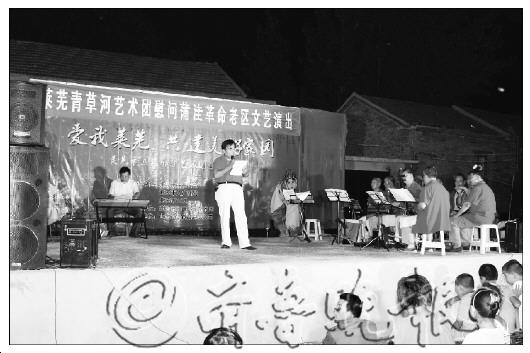 本报8月26日讯(见习记者 张群 徐莹) 8月25日,莱芜市莱城区青草河艺术团开展送艺术下乡活动,来到牛泉镇蒲洼村为当地村民义务演出。此次演出有30多名演员参加,共为村民们奉献了20个精彩的节目,演出现场吸引了当地千余名观众。 演出在晚上7点半开始,长达两个小时的节目类型多样,异彩纷呈。演员们不仅为村民们带来了家喻户晓的豫剧《穆桂英挂帅》选段,黄梅戏《天仙配》选段,还有歌曲《我爱你中国》、《小背篓》等。在热烈气氛的感染下,本打算演唱《人说山西好风光》的刘恒祥当场即兴改编歌曲《人说蒲洼好风光》,引得观众阵阵叫好声。艺术团原本计划演出19个节目,演完后观众直喊不过瘾,于是临时加演豫剧《朝阳沟》选段。 演出刚开始突然降临的阵雨并没有浇灭观众的热情,连舞台临近的公路上都挤满了人。艺术团团长孟广君告诉记者,由于团里没有交通工具,公路局的领导得知后十分支持这项活动,立即给团里配了辆大巴,孟广君说很感谢他们。 据了解,青草河艺术团从2009年起就一直活跃在青草河周围,常年免费演出,凤鸣广场就是他们经常演出的地方。平时的节目都是由副团长郑怀祥负责排练。艺术团团员平均年龄55周岁,退休以后团员自学戏曲或者歌曲。艺术团的排练场地位于青草河旁,无论天气如何,他们始终坚持排练。孟广君说:“我们大部分人之前都没学过这些,团员们从网上下载音乐后自学,我们不求名利,就想每天开开心心的,让生活有质量。娱乐、快乐、健康就是我们的宗旨。” 蒲洼村是东巍梆子的发源地,本周三在当地有一个“文化遗产会”。此次活动组织者刘恒祥说,艺术团此次演出既是遗产会的预热,也是与蒲洼村东巍梆子艺术团的交流。通过这次演出丰富村民们的文化生活,共享文化发展的成果。 青草河艺术团正在演出。