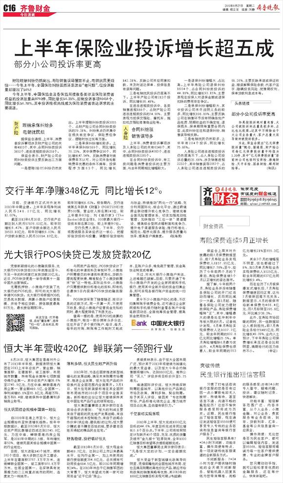 上半年保险业投诉增长超五成