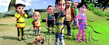 本报讯(记者 倪自放) 山东第一部大型三维动画电影《少年岳飞》,8月27日在济南举行首映式,同时在全省影院全面公映。 《少年岳飞》由济南海水科技有限公司独立制作,是用先进的三维CG技术精心打造的大型动画作品,展示了岳飞从出身贫寒的农家子弟成长为舍家为国的民族英雄的传奇人生历程。 《少年岳飞》总投资1500万元,2006年开始筹备,2007年正式开发制作,前后历时七年。与之前动画作品不同,《少年岳飞》角色形象的设计,大量汲取中国唐宋时代人物画、壁画、造像艺术以及民间版画、年画的风格;动画设计上,大量参考中国戏剧、武术、杂技中的动作表情;场景设计上,适当把工笔、泼墨的山水艺术风格应用到大远景中,中景和近景采用半卡通半写实风格,让风景与战争场面惟妙惟肖。