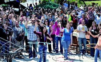 | 1.“卡西尼”号拍摄的土星照片,右下角标出的小点是地球。 |  | 2.NASA用1400多张地球公民挥手照片拼成的地球马赛克。 |  | 3.NASA于7月19日拍摄的照片,片中NASA的工程师与参观者一起向土星挥手。 (以上图片均来自NASA网站) |