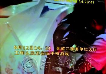 本报8月27日讯(记者 陈玮 赵伟) 27日,在济南基层群众代表专题报告会上,现场播放的一段视频引起关注。济南市电视台进行了半个月的机关工作作风暗访,个别工作人员在上班时间玩游戏、看电影等行为被曝光。 “办护照都拿什么东西?”“咨询的都在下面,你问下面那些小孩。”视频中,暗访人员来到某窗口单位收费处,一位工作人员在回答暗访人员咨询时,边玩手机边漫不经心地回答问题。暗访人员问及收费、手续等问题,该工作人员说这个要现场办才知道,具体信息自己也说不上来。而在另一个窗口单位,暗访人员咨询如何办税,一名工作人员正在玩游戏,头也不抬地回答提问。当暗访人员表示自己也在玩这款手机游戏时,这名工作人员竟然和暗访人员聊起了游戏。 暗访中,个别工作人员利用上班时间看电影、玩游戏,甚至炒股票、看电视。暗访人员来到龙奥大厦某部门一间办公室,一位工作人员上班时间正在炒股。当暗访人员询问某局怎么走,这位工作人员显得非常不耐烦,仅回答在8楼,其他问题充耳不闻。有的工作人员看到暗访人员前来,立即关闭了游戏、视频,而有的工作人员被发现玩游戏、看电视之后,竟然不避讳。 此外,暗访人员在某单位健身房发现,个别工作人员利用上班时间进行健身。有位工作人员还在健身房不慌不忙地锻炼了40分钟才离开,并且全然不顾健身房“禁止光膀训练”的警告。 在为期半个月的机关工作作风暗访中,发现了上班时间玩电脑游戏、炒股、看网络视频,上班时间不在岗位,迟到早退,工作人员服务态度欠佳等方面所存在的问题,虽然是个别现象,但影响了党和政府的形象。 省委常委、济南市委书记王敏表示,会后各个部门的负责同志,一定要认真深刻地进行反思。一定要结合部门实际,看看部门、区县是不是存在作风问题,并制定措施解决这个问题。