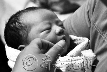 | 刚出生的小宝宝十分乖巧。本报记者 李岩松 摄 |