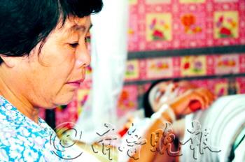 | 说起儿子的病情,汪运梅很悲伤。本报记者 李岩松 摄 |