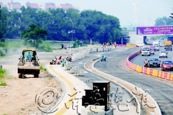 27日,滨河西路路边的东沟加固改造工程已完成沟底的清淤和加固,大部分路段已开始进行路面扩建和人行道铺设施工,扩建后的滨河西路通行能力大大提升。 本报记者 马志勇 摄