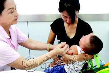 27日,记者了解到,为确保在上学时提供预防接种证明材料,近期不少家长带着孩子补种疫苗。 本报记者 王小会 王乐伟 摄影报道