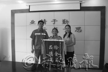 8月21日晚,胜滨治安队员唐君花与家人在小区和谐广场散步时捡到个钱包,看着在广场纳凉和参加健身舞的三百多人唐君花选择了在原地等待,广场上的居民渐渐散去却没有等来失主。22日早上,她将钱包交到队上,希望队上能够帮助她尽快查找失主将钱包还回去。通过一张会员卡上的编号,胜滨治安队辗转联系到了失主。杜女士赶到胜滨治安队领取失物时当场取出现金表示谢意被唐君花婉言拒绝。杜女士看着失而复得的钱包和被拒绝的现金,专门定制了锦旗送到胜滨治安队。