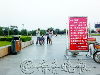 为了更好地整治对广场卫生以及车辆进出不安全等现象,光明广场管理办公室在7月26日出新规,禁止一切车辆、宠物进入光明广场内(婴儿车、残疾车除外)。可8月27日新规定已经下达一个月,在光明广场仍可以看到有市民从广场骑车出入。 本报记者 赵艳虹 摄影报道