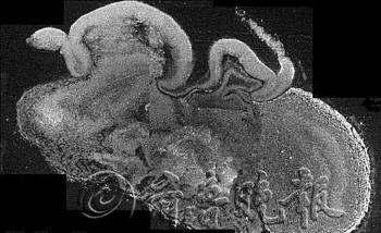 | 显微镜下“迷你人脑”的透视图片。 据每日邮报 |  | 科学家对同样大小的普通胚胎内正在发育的大脑(左图)和实验室培育出的“迷你人脑”(右图)进行的比较。 据每日邮报 |
