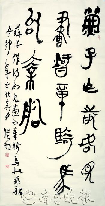 “书法讲法在于器,书法无法贵于道”。我的理解,书法作品首重气息格调,切忌雕饰造作。如同一个人由内而外透出的精神气质,作品气息自然要追求雅逸清正、味厚神藏,格调既要高古又要体现时代气息,要经得起品读,要有余韵,要力求体现书家的性情品位。尤要摒弃创作中为形式而形式的装扮成分,挖空心思经营布置、拼接修饰等书法本体以外的画蛇添足式的手法,切忌“戴着假面具跳舞”;其次在审美取向上追求古逸清雄、拙朴厚重。审美取向是书家个性语言表达和作品风格形成的重要牵引,是艺术创作的灵魂。在审美追求中,既要多与古为徒,又要尝试独抒性灵。要坚持“读万卷书、行万里路”,感受自然生灵和天地造化,脱去胸中尘浊,才能更加达观通透。通过多读书,多思考、多积累,多从生活中感悟人生,多用辩证的眼光看事物发展,始终用敬畏的心态对待中国传统文化,不断磨炼、砥砺和提升自己的文化品格,努力让自己的心态沉潜、安静下来,笔墨中流淌的心性、灵气才会愈加古逸、清纯、浑厚;再次要注重作品规模气象,追求文心内涵。要有贯通意识,追求作品金石气和书卷气的融合,尽可能包含多的中国文化内涵信息,魏晋气度、汉唐精神、宋元写意等等,取其一点而融通贯之。