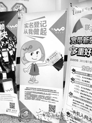 多家营业厅已在显眼位置摆放了实名登记的宣传板。本报记者 蒋慧晨 摄