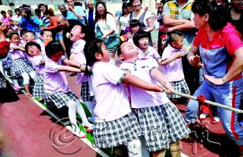 作品描述:小伙伴们加油拉呀,不过要是对方输了一松手,你们不全得摔个屁股墩儿呀。