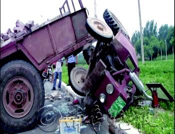 本报8月29日讯(记者 孙婷婷) 28日上午9时许,一辆满载绿化砖的拖拉机在行驶至国道104大王庄路段时,连接车头和车斗的轴承发生翻转,驾驶室中的两人被翻转的拖拉机压在下面。随后,大王庄村的五名村民合力将两名被困者救出,并拨打120,将被困者送往德州市中医院。 28日上午10点左右,在国道104大王庄路段,一辆满载绿化砖的拖拉机,车头四轮朝天,连接车头和车斗的轴承发生翻转。车头朝后翻转,拖拉机翻车在路边,车头驾驶室内除了不断往外滴油滴外,车斗内满载的绿化砖散落了一地。 大王庄村民王立明介绍,他有自己的吊车,停放在路边等活,28日上午,听到村民说有拖拉机翻车后困住人了。“听到有其他村民说赶快去救人,我立马就开着吊车过来了。” 王立明将吊车开到事发现场后,他的媳妇王女士和同村的其他三名村民将吊车带挂在拖拉机上。“一位小伙子把拖拉机顶棚的角铁砸开,不然根本就挪不出人来。”王女士说,当时王立明启动吊车后,她和其他3名村民也合力往上抬驾驶室,驾驶室升高到一定高度时,村民拖住被困人员的背部,将两名被困人员救出。“驾驶室撞坏了,得有人托着点,不然散落的铁块能砸到他们。” “当时驾驶室中有一男一女,女的被困在最下方,伤到了腿,一直在滴血。”王女士说,被困的男司机救出时,只发现面部有划伤。“吊车是自己家的,能救人也算是帮上大忙了。” “村民给叫来的吊车,太感谢他们了。”在德州市中医院,被困司机介绍,他从陵县开车到大雁岛附近送货,行至国道104大王庄路段,有一辆汽车距离他的拖拉机很近,再加上拖拉机拉砖头过重,他想避开对方,情急之下,一个急刹车,拖拉机就发生了侧翻。 (奖励线索人 张女士 50元)