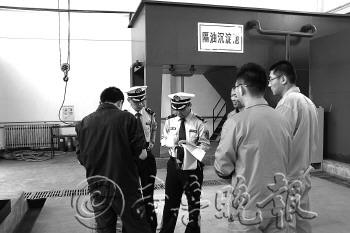 图为海监支队执法人员对海洋工程建设项目进行现场检查。