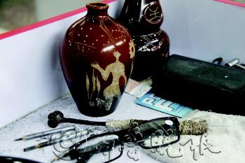 刘春江刻盘用的工具。 本报记者 刘涛 摄