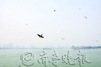 29日,数以千计的燕子在东昌湖湖面上空飞来飞去,吸引了不少市民驻足观看。据了解,这是因为很多小昆虫在靠近水面的空中,燕子易于捕捉昆虫吃。 本报记者 邹俊美 摄
