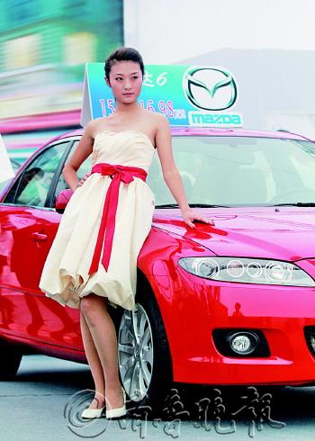 | 汽车博览会上,美女车模为靓车添彩。(资料片) |