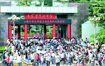 | ▲8月30日,家长们聚集在省实验中学门外等待报到的孩子。(资料片) 本报记者 邱志强 摄 |