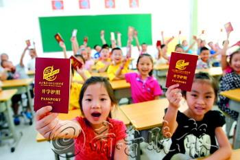 | 9月1日,在暑假里整修一新的济南十亩园小学操场上,孩子们高兴地在崭新的塑胶跑道上撒起欢来。新的学期开始了,每个孩子都重新站在了起跑线上。 本报记者 王媛 摄 |  | 9月1日,济南阳光100中学一年级新生报到时收到“开学护照”,学生可按照护照的内容,找教师办公室、认识老师……尽快熟悉校园生活。 本报记者 李飞 通讯员 靳鑫 摄 |