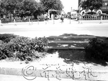 | 事发现场,人行横道被绿化带阻断。 张林 摄 |