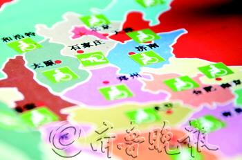 本报记者 李岩松 摄 |  | 地图上的标识,记录着张庆利的足迹。本报记者 李岩松 摄 |