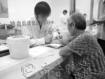 本报济宁9月1日讯(记者 贾凌煜 通讯员 季昌栋 侯宪杰) 9月1日开始,近万名70周岁至72周岁的企业退休人员在济宁城区六大医院和县市区医院免费体检。 1日上午8点,在济宁医学院附属医院抽血窗口,李大爷伸出胳膊准备抽血。一大早赶过来参加体检,他已经做完心电图和彩超等几个项目。李大爷今年72周岁,是济宁市第一化工厂的退休职工,企业破产后没有组织过集体体检。此次体检李大爷将享受内科、外科、耳鼻喉科、口腔科、眼科、血压、肝胆脾双肾彩超、心电图、尿常规、血糖、血脂、肝功、肾功、胸透等18个项目的免费检查。 “今年有9932名企业退休人员享受免费体检,其中市直四千余人分时间段在第一人民医院、山推医院等六家医院进行检查,其他县市区企业退休人员在各自辖区指定医院进行体检。”济宁市社会保险事业局负责人介绍。