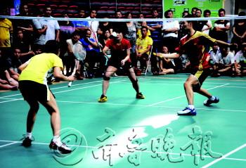 8月31日至9月1日,德州市羽毛球运动协会举办了第二届羽毛球双打邀请赛,37个代表队和个人报名参赛者共计552人参加。此次比赛除了吸引德州市业余羽毛球队员参加外,还有来自北京、河北业余运动员参加。图为9月1日,参赛队员正在进行对决。