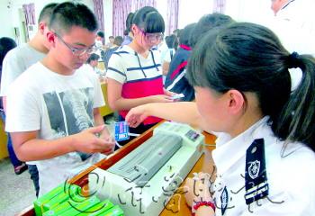 助学公交乘车证办理现场。   本报记者 周千清 摄 发卡了