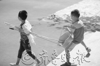 第一天到校报到,孩子们准备打扫教室卫生。 本报记者 张晓鹏 摄