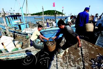本报记者 潘旭业 陈之焕 9月1日,长达3个月的黄海、渤海伏季休渔期结束,渔船纷纷出海作业。在位于青岛西海岸的积米崖中心渔港内,受船员工资和柴油价格上涨以及招工不足的影响,部分大渔船尚未出海。在后岔湾码头,首日出海的小渔船纷纷归来,很多渔船捕捞到的海货还不到百斤。开海第一捕,渔民没吃饱。 准备 开海前修船补网,盼能有个好收成 8月31日,位于青岛西海岸的积米崖中心渔港内,200余艘大马力渔船整齐地停在码头,每条船上都换上了崭新的国旗,渔民有的在整理网具,有的修补船只,有的将放置海货使用的冰块装上船,码头上一片忙碌,都在为出海做最后的准备。 来自黄岛区泊里镇的船老大刘先生在港内有两艘450马力的渔船,虽然他已经不用自己跟着出海捕捞作业了,但临近开海,他还是来到船上,和船员们一起收拾收拾东西,做些准备工作。做了6年的船老大,刘先生坦言渔船出海作业带来的利润一年不如一年,但对于450马力的大渔船来说,每年还是有些赚头的,只是赚多赚少而已。“休渔期后第一次出海,谁也不知道今年收成怎么样,看看第一船捕捞的情况大概就有数了。这么大的渔船快的话两三天就回来,但愿今年有个好收成。”刘先生说。 与积米崖中心渔港相比,青岛开发区后岔湾码头聚集的大多是20马力以下的小渔船,渔民驾着小船一天出海一次。今年56岁的老渔民郭太兴出海30多年了,最近几年来,感觉小马力的渔船越来越打不到东西了,村里很多渔民将自己的船只卖了转行。8月31日下午,已经做好准备工作的老郭一个人坐在船上抽烟,黝黑的脸上没有一点表情,当问及感觉今年会收成如何时,老郭深吸了一口烟,淡淡地说:“谁知道呢,能吃饱就行。” 出征 有船却招不齐人,部分船只未出海 1日12时许,渔船早已纷纷出海,偌大的积米崖中心渔港码头显得非常空旷,但仍有20余艘450马力的渔船停在码头,有的船上只有两三个人在忙碌,有的船上直接没有船员,似乎根本没有出海之意。 在一艘只有三个船员的渔船上,记者遇到了船老大崔先生。老崔养了4艘渔船,其中的两艘已经出海了,剩下的两艘各项准备工作都已经就绪,但却一直没有招够人手。 “现在一个出海的船员一个月最少也得给8000元钱,最多的每月超过1万2,即使这样,还是雇不到人。每条船上至少要配至8个人,我好不容易招够了两条船上的船员,剩下的两条船一直没招够。”崔先生说。 高昂的工人薪资给船老大带来了很大的成本压力,柴油价格的上涨和捕捞量的降低让很多船老大越来越感到无利可图。“450马力的渔船出海,一天至少需要700多斤柴油,接近3000元的成本,8个人一天的工资也需要2000多元,每次出海一趟多的时候需要一个周,光成本就需要三四万,捕捞量小了根本就赚不到多少钱,再加上工人这么难招,所以很多渔船直接没出海。”崔先生说。 收成 开海第一捕,打上海货不足百斤 1日15时许,后岔湾码头的很多小马力渔船陆续回到码头,老薛和老郭驾驶的一条20马力的渔船成为码头上第一条回来的船。当问及收获情况时,老薛直摇头:“今天不好,没打到多少东西。” 渔船一靠岸,一名早已经等在码头的鱼贩子就靠了上来,渔民老郭将打捞到的海货从船舱中分类拿上来,过完秤后直接交给了鱼贩子。 在商贩记录的账本上,记者看到写着“小对虾11斤,老板鱼13斤,八带鱼8斤,蛎虾25斤,海螺6斤,比管鱼4斤,虾虎4斤,螃蟹3斤。”总共74斤,这就是老郭和老薛驾驶的渔船开海第一捕的所有收获。收完这艘渔船的海货后,商贩又转移到了下一艘船上。 “今天出海,打上来的这些海货一共卖了1000多块钱,除去柴油和船只维修费用,我们两个人还真不如给船老大打工收入多。”老薛说。记者在现场看到,小渔船打上来的海鲜个头都很小,很多渔船第一天捕捞上来的海货都不足百斤。 市场 订单抢购,酒店派车码头接站 等了三个月,终于开海了,很多酒店早就“憋”不住,提前跟渔船约好订购新鲜海货。很多渔船还未出发,海货就被订购一空。 1日上午,沙子口渔港码头船老大老曲在送渔船出海时还接到酒店的订货电话,称要多订些新鲜海货,老曲一脸无奈地称都被订走了,尽量给留出点。“每次都是回来不够分的。”老曲说。 14时许,南姜码头的渔船出海捕捞还未归港,不少酒店便派车在码头等候新鲜海货。记者在现场看到,码头上车辆成排,出入很困难。15时,渔船陆续归港,酒店的接货员接到渔船专门准备的个头较大的海货便迅速离去。“几年来一直都约好了,每次都在这等,老主顾了,他们会给我留些个头较大的,不用挑,直接拿了货走人就行。”前湾酒楼一名姓王的接货员告诉记者,还没开海,一些老顾客就打电话预订最近一周的海货了,当天酒店差不多客满。 “好的都给酒店留着了,这次捕捞的少,剩下的只能挑挑卖了。”为前湾酒楼供货的船老大饶军称,这个季节基本上都是小鱼小虾,个头大的较少,而且全都卖给酒店了,剩下的小鱼小虾基本卖不上价钱。但因酒店要货多,渔船都喜欢卖给酒店。较大的酒店都到沙子口渔港寻找船老大,小一点的酒店才会来南姜。