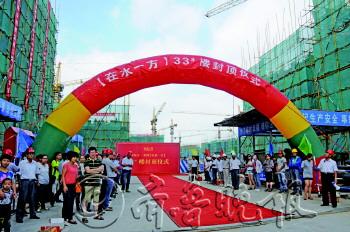 2013年8月30日,新东方·龙湾【在水一方】项目33号楼的主体封顶仪式在项目施工现场隆重举行。万众瞩目的聊城首席湖景臻品华宅耀世而现。 【在水一方】项目于今年5月1日正式动工,在建设单位、设计单位、监理单位、施工单位及其他的相关部门的共同努力下,工地全体人员克服种种技术难题,保质量、保安全,在4个月的时间内就完成了33号楼的主体工程建设。 作为光耀东方集团精心打造的聊城东昌湖畔、至尊豪宅。【在水一方】项目位于东昌湖与古运河围合而成的黄金水岸,三面环水,占地面积168亩,总建筑面积约18万平方米,集居住、娱乐、购物、文化、教育于一体。项目规划有22栋楼,11栋6层水岸洋房沿东昌湖、古运河分布,11栋11层景观豪宅分布在小区中间,高低错落有致,既有利于项目整体的美观,又充分保障业主户户观景效果,首席湖景臻品华宅蔚为大观。 小区“龙之心”、“龙之脊”主题园林景观,以超越保持最美。径、亭、水、雕、灯、花、篱……最大绿化面积,最开阔视野空间,给视觉最丰厚的犒赏。超大面积人工湖清荷池,宁静、清幽,氤氲蔚然,勾勒出自然、豁达、智慧和包容。 小区设计遵循实用美学原则,融合现代生活理念,考究不同客户需求,研琢多种创意户型。南北通透、观景飘窗、情调阳台……空间自由灵动,阳光触手可及,每一处细节的体贴,都为构造私属尊贵生活。同时,第一太平戴维斯百年物业标准,敬献世界级物管服务。 【在水一方】项目自规划之日起,开发公司高度重视,公司上下投入大量精力、人力、物力、财力,全面保证按要求完成项目建设目标。对设计、施工严格要求、严格把控,力求通过高水平的规划建设,融入国际先进人居理念,提升绿化档次,丰富项目景观,完善服务功能,缔造水城豪宅新典范。 相信,在诸多品牌公司的通力协作之下,不久【在水一方】项目将完美震撼地呈现在大家面前!