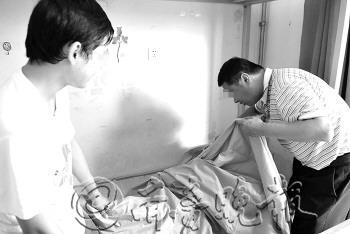 | 2日,19岁的新生张旭猛从老家安徽阜阳独自一人扛着麻袋来济南上大学。 本报记者 邱志强 摄 |  | 2日,很多家长在宿舍帮忙整理床铺。本报记者 邱志强 摄 |