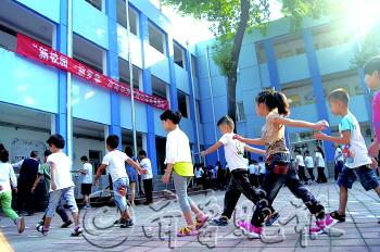 9月2日,纬三路小学师生迎来了“新”校舍和操场。不过,记者了解到,这座新校舍实际是经过两次加固后的一幢德式老建筑,距今已超过50年。由于周围环境所限,这个小学至今还没能拥有一条长度达到50米的跑道。一个学年只有两个班级、全校12个班的建制,让纬三路小学成为济南市区名副其实的“小”学。 本报记者 张榕博 摄