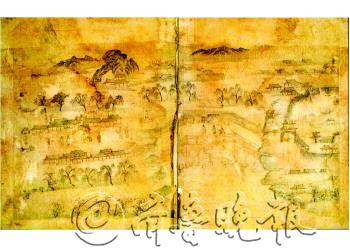 翟伯成 天启四年(1624年)9月23日,朝鲜派正使李德、副使吴翔、书状官洪益汉和跟随画员等专程考察中国。每到一县,他们先向地方官员了解地方民情、社情,然后游览名胜古迹。临走都要收集一些地方书籍,跟随画员还要绘制一张城厢图或沿途主要胜景图,用汉字标明主要景点的名称。在重要府县城厢图的上方空白处,还记载了该地主要名胜古迹和地方名人,共25幅,名之曰《燕行图》。
