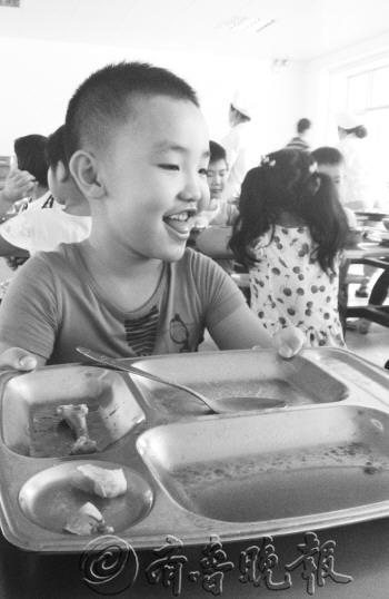 本报记者 韩杰杰 9月2日,全市中小学开学第一天。对一年级新生来说,这天他们经历了太多的第一次。在潍坊高新双语学校,200名“小一生”面对开学第一餐,交出了一份合格答卷。他们虽是家里的“小王子”、“小公主”,但就餐时多数能做到不挑食、不浪费。 上午11点,高新双语学校的餐厅内迎来了一批新面孔,这200名稚气未脱的一年级新生将在这里接受就餐培训,并进行就餐体验。 “端盘子,要端两边,别烫着手”“大家吃多少,要多少,不够再来拿,别浪费”……就餐指导老师杨兴一边让大家排好队领餐,一边告诉孩子们一些注意事项。只见,一个个稚气未脱的孩子,在老师的指导下,自己动手拿餐盘,排队领餐,然后再到规定区域内就餐。 当天的菜谱是西红柿炒鸡蛋、肉炒茄丁和鸡腿,面食是米饭和馒头。一年级新生庄佳旺第一次在学校吃饭,觉得“学校的饭真好吃”。他告诉记者,西红柿和鸡腿最好吃,不仅饭好吃,和其他小朋友一起吃饭也很好玩。记者看到,他的餐盘被他“打扫”得非常干净,仅留下了一点菜汤,至于鸡腿中的骨头,他也是啃了又啃,最后嗑出了一根光溜溜的骨头。另一新生高天皓则因为饭菜好吃,连吃了两份,吃得饱饱的才离开。 记者注意到,从就餐情况看,多数孩子表现良好,就餐时能做到不挑食、不浪费、不打闹,并自觉当起“光盘族”;仅有少数孩子不太适应,将午餐垃圾扔在餐桌上,或是与周边孩子说话打闹,或是餐盘里剩下不少饭菜。就餐指导老师杨兴说,现在首要的任务是让孩子养成良好的就餐习惯,如餐前用洗手液洗手,领餐时要排好队,适量拿取,就餐时不许说话打闹,做到细嚼慢咽,不浪费,餐后按顺序摆放餐盘等等。从开学第一餐来看,多数孩子表现得都很好,交出了一份合格答卷。 开学第一餐既有蛋又有肉,堪称丰盛,那么日后的午餐是否还是相同标准?记者从该校餐厅处了解到,虽是开学第一餐,但标准与平时相比并无改变。日常午餐都是两素一荤,且保证每周五天花样不重,配有汤或粥,以此让孩子营养摄入均衡。而为保证食材质量,学校餐厅与中百佳乐家超市签订了订货合同。