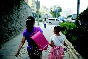 | 2日早7时30分,在旌德支路,车流缓慢移动。本报记者 张晓鹏 摄 |  | 受堵车影响,不少家长提前下公交,步行送孩子上学。 本报记者 张晓鹏 摄 |
