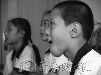 | 看到付丽娟跳伞的片段,孩子们露出钦佩的表情。 本报记者 谭正正 摄 |